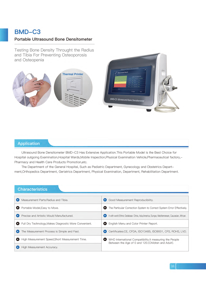 Ultrasound Bone Densitometer BMD-C3 Has Extensive Application,This Portable Model is the Best Choice for Hospital outgoing Examination,Hospital Wards,Mobile Inspection,Physical Examination Vehicle,Pharmaceutical factory,Pharmacy and Health Care Products Promotion,etc.